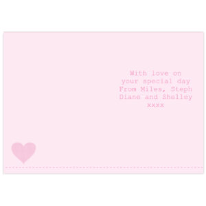 Personalise this Card with a name/role in the centre of the heart up to 12 characters in length and then a message below over 4 lines of 20 characters per line.
