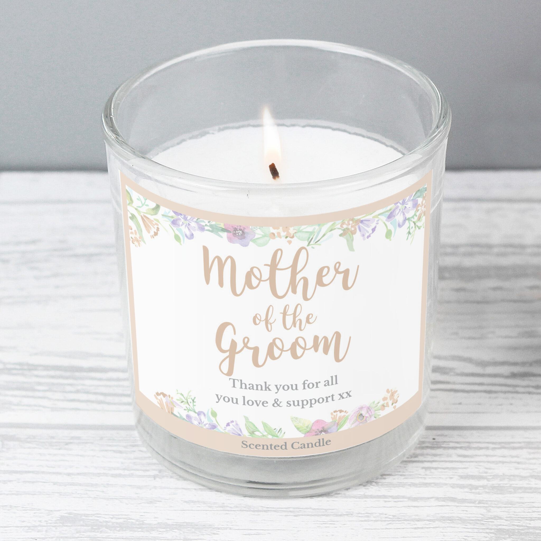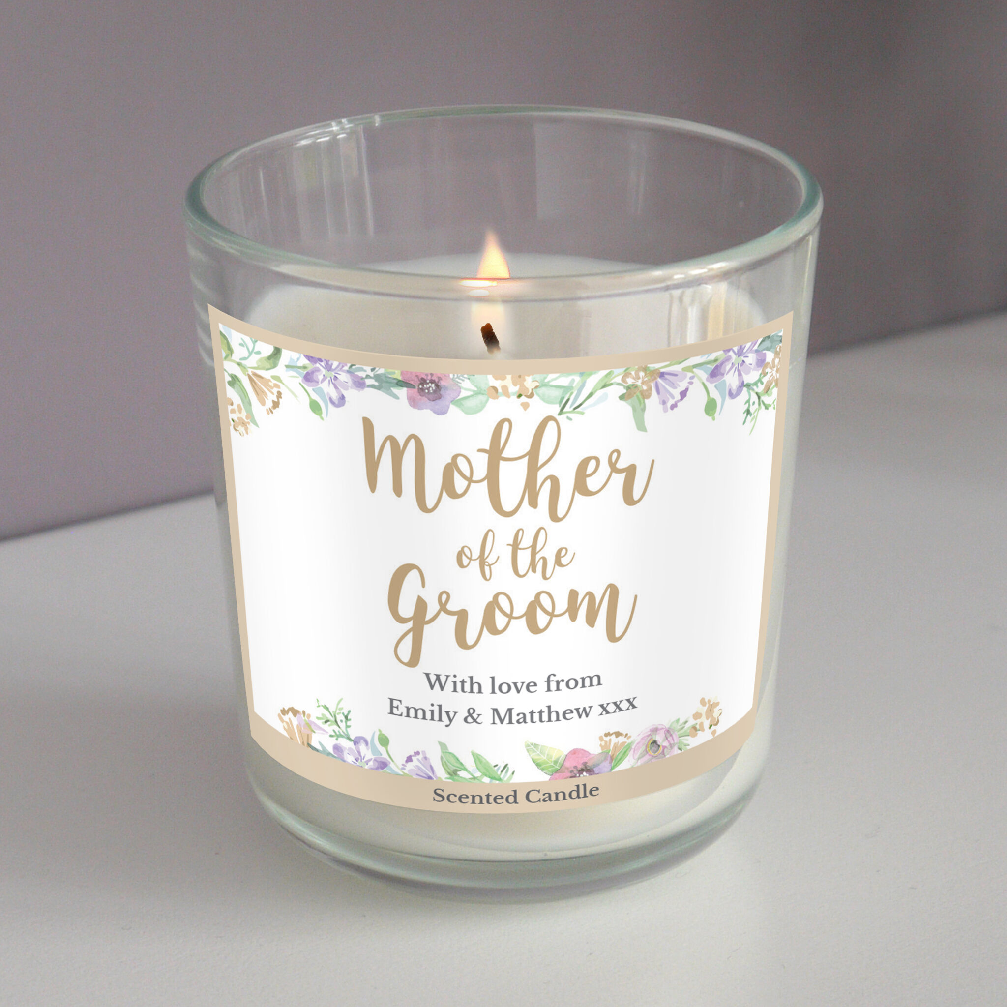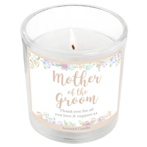 Show how much you appreciate her with this Personalised Floral Mother of the Groom Scented Jar Candle.